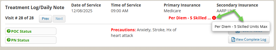 FYI to avoid confusion: The "Primary Insurance" name listed in the daily note header is actually the Insurance Carrier not the specific plan attached to the case, but the payer guidelines will be linked to the specific plan listed within the insurance tab.